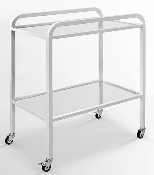 Stolik zabiegowy stanowi doskonałe wyposażenie gabinetu zabiegowego w szpitalu, przychodni, ośrodku zdrowia i innych placówkach służby zdrowia. Stolik ma dwa poziomy półek ze szkła hartowanego. Łatwy w utrzymaniu czystości isterylności. Dzieki kółkom jezdnym z blokadą mebel jest mobilny i dopasowuje się do każdego pomieszczenia.