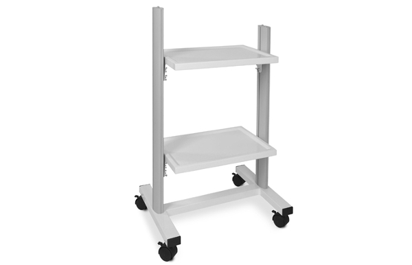 Stolik pod aparaturę medyczną znajduje zastosowanie w przewozie na niedalekie odległości narzędzi oraz aparatury medycznej w szpitalach oraz gabinetach zabiegowych. Stolik wykonany z aluminium i stali, pokrytej lakierem proszkowym. Osadzony jest na kółkach jezdnych z hamulcem. Tace stolika wykonane ze stali pokrytej lakierem proszkowym. Stolik posiada 2 półki. Wysięgnik kroplówki posiada 2 haki wieszaków.