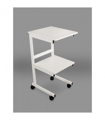 Stolik pod aparaturę medyczną znajduje zastosowanie w przewozie na niedalekie odległości narzędzi oraz aparatury medycznej w szpitalach oraz gabinetach zabiegowych. Metalowe stoliki pod aparaturę wykonane są z profili aluminiowych pokrytych farbą proszkową. Półki wykonane są z białej płyty laminowanej. Kółka zamontowane w szafce umożliwiają łatwe przemieszczanie.