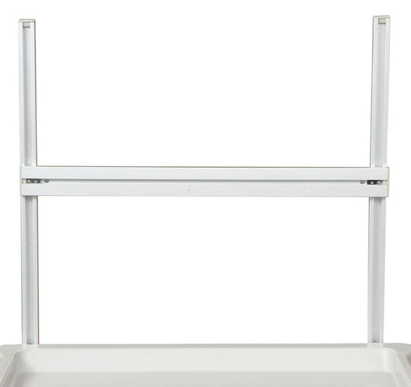 Nadstawka wykonana jest z materiału najwyższej jakości, odpornego na odczynniki mechaniczne, np. wygięcia i zadrapania. Zbudowana jest ona z szyn, w który z łatwością wepniemy potrzebny nam sprzęt. Gwarantuje stabilność i pewność w utrzymaniu mocowanych przedmiotów. Pomaga w organizacji sprzętu medycznego.
