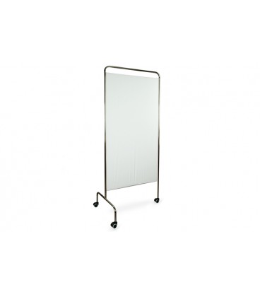 Stelaż parawanu wykonany jest z chromowanych rurek, dzięki którym jest on lekki, ale przede wszystkim stabilny. Ekran wykonany jest z materiału zmywalnego, na życzenie klienta może być on zastąpiony elanobawełną. Ustanowiony jest od na kółkach, dzięki którym z łatwością przetransportujemy go w dowolne miejsce. Duża ilość kółek i pewna, wzmocniona podstawa gwarantują przetransportowanie parawanu bez możliwości poślizgnięcia