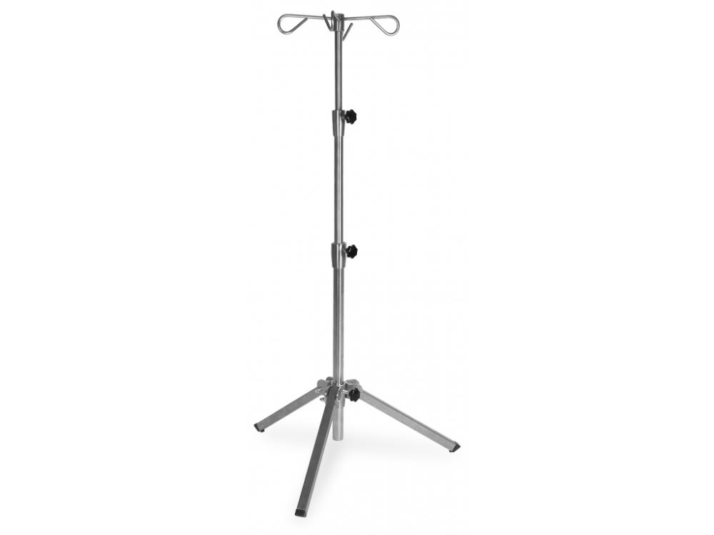 Stojak do kroplówek przeznaczony jest do zawieszenia pojemników z płynem (np. torebki plastikowe, butelki szklane) do podawania dożylnego u pacjentów. Stojak wykonany jest ze stalowych rurek malowanych proszkowo. Składana podstawa stojaka wyposażona jest w stopki. W górnej części konstrukcji znajdują się haki wieszaków. Stojak na kroplówki ma budowę teleskopową, umożliwiającą łatwą regulację wysokości. W zestawie znajduje się także pokrowiec do transportu stojaka.