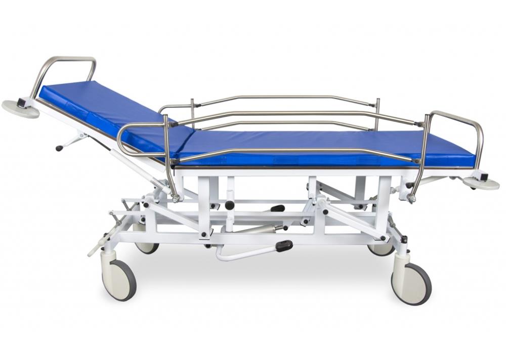 Wózek wykonany jest ze stalowych profili oraz blatu pokrytego tapicerką. Wózek posiada opuszczane barierki boczne, płytę HPL przezierną dla promieni RTG, hydrauliczną regulację wysokości, kółka jezdne, odbijaki oraz w opcjach dodatkowych kółka z centralną blokadą, obudowę maskująca podstawę wózka z półką na ubrania pacjenta, koszyk na butlę z tlenem, składany wysięgnik do kroplówki, uchwyt na rolkę z podkładem oraz koszyk na ubrania pacjenta.