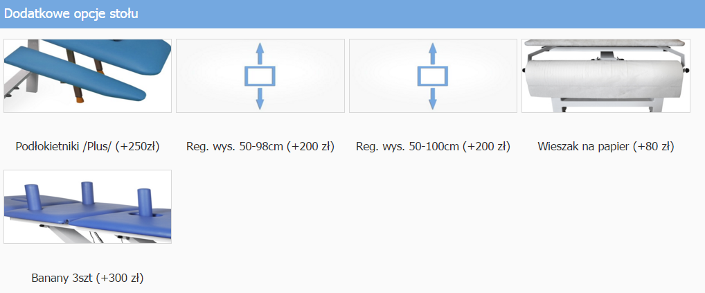 W wersji elektrycznej stołu istnieje możliwość regulacji wysokości w zakresie od 50 cm do 100 cm (opcja dodatkowa za dopłatą).
