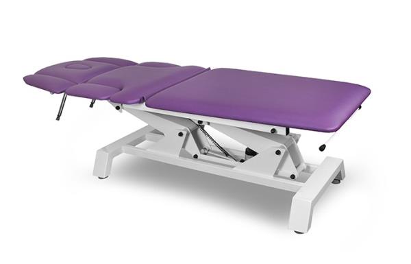 E (elektryczna regulacja wysokości stołu) posiada trzyczęściowe leże umożliwiające uzyskanie pozycji Pivota oraz fotela. Ustawienie stołu do pozycji Pivota oraz regulacja wysokości stołu odbywa się za pomocą siłownika elektrycznego sterowanego pilotem ręcznym. Podgłówek oraz tylna część stołu regulowane są za pomocą sprężyn gazowych. Stół może być wyposażony w opuszczane półki boczne i podłokietniki (opcja dodatkowa). KSR 3 L E znajduje zastosowanie w terapii manualnej, głównie przy schorzeniach kręgosłupa.