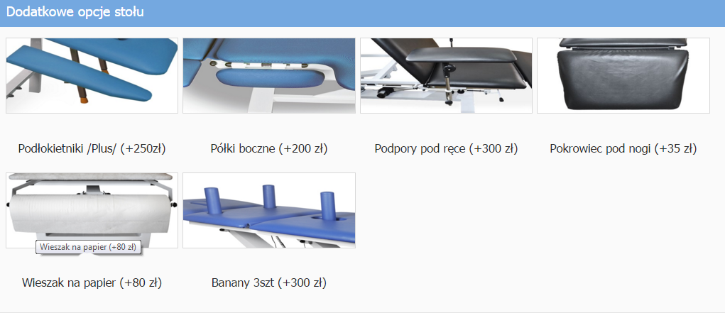 Wybrane dodatkowe opcje prosimy o wpisanie w uwagach do zamówienia.