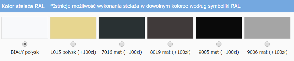 Wybrane dodatkowe opcje prosimy o wpisanie w uwagach do zamówienia.