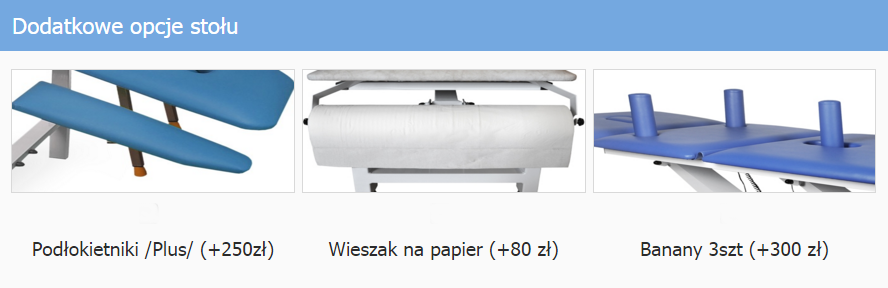 Wybrane dodatkowe opcje prosimy o wpisanie w uwagach do zamówienia.