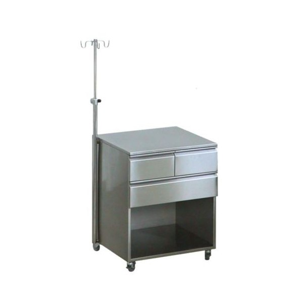 Szafka anestezjologiczna ze stojakiem do płynów o regulowanej wysokości 130-210 cm, z blachy kwasoodpornej.
