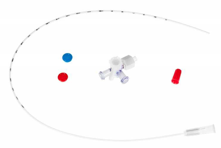 Dostarczany z małym 2-kierunkowym kranem i wtyczkami identyfikacyjnymi (czerwona do stosowania tętniczego, niebieska do użytku dożylnego).