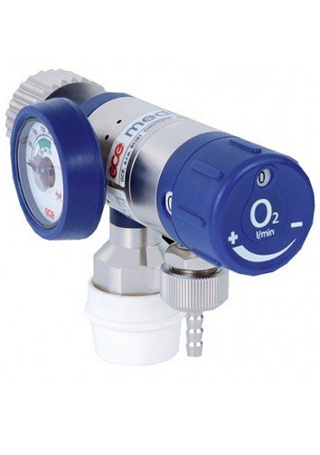 Reduktor tlenowy MEDISELECT II ze skokowo regulowanym przepływem 0-25 l/min oraz złączem AGA . Spełnia wymagania dla sprzętu tlenowego w PSP, OSP, pogotowiu ratunkowym i placówkach służby zdrowia.