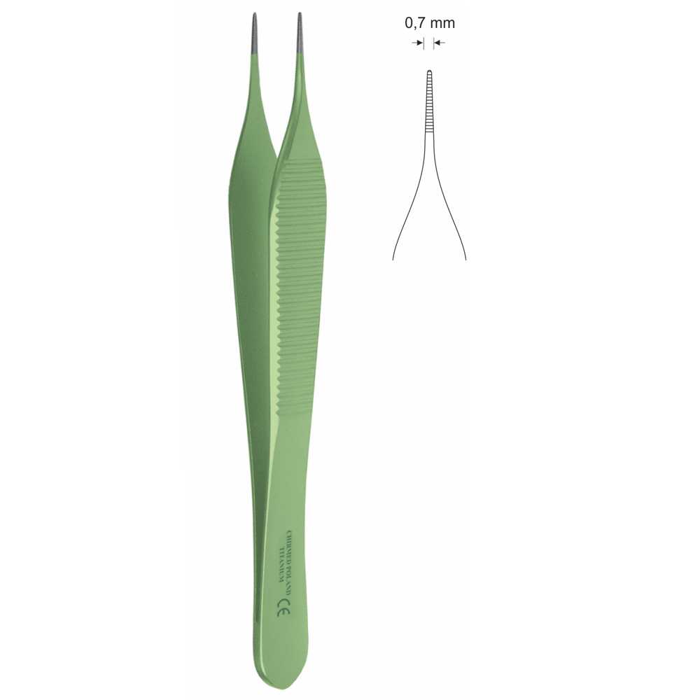 Wysokiej jakości precyzyjna pinceta chirurgiczna wykonana z tytanu. Wysoka jakość wykonania oraz wykorzystane materiały gwarantują funkcjonalność, wytrzymałość oraz wysoką odporność na korozję w warunkach użytkowania, dezynfekcji i sterylizacji.