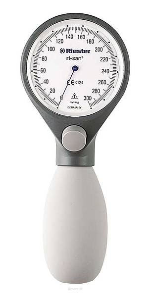 Ciśnieniomierz zegarowy Ri-san to najwyższej jakości nowoczesny ciśnieniomierz lekarski firmy Riester. Zaopatrzony jest w ergonomiczny system spustowy w postaci przycisku umieszczonego pośrodku, który jest wygodnie regulowany za pomocą palca. Możliwa obsługa przez osoby prawo i leworęczne. Ciśnieniomierz jest w kolorze szarym. Dołączony mankiet na rzepy dla dorosłych w rozmiarze 24 - 32 cm.