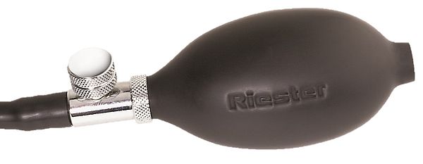 Gruszka do ciśnieniomierza jest głównym i niezbędnym elementem wykorzystywanym przy pomiarze ciśnienia krwi. Dzięki pracy mechanicznej, poprzez energiczne uciski, następuje wtłaczanie powietrza do rękawa ciśnieniomierza. Dodatkowo jest zaopatrzona w solidny zawór dolny z dokładną regulacją, który zabezpiecza przed utratą powietrza. Przeznaczona jest do ciśnieniomierzy Riester, np Precisa N czy Big-Ben. Wykonana została z wysokiej jakości lateksu w kolorze czarnym. Jest elastyczna i bardzo łatwo wtłacza powietrze do rękawa. Gdy gruszka ulegnie zniekształceniu lub zniszczeniu należy ją natychmiast wymienić, ze względu na wpływ wtłaczanego powietrza na dokonanie miarodajnego pomiaru. Polecamy wybranie oferowanej gruszki od niemieckiej firmy Riester, którą wyróżnia duża wytrzymałość. Dzięki temu posłuży Państwu znacznie dłużej niż odpowiedniki innych producentów.