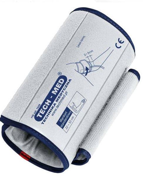 Mankiet standardowy firmy TECH-MED pasujący do każdego elektronicznego ciśnieniomierza naramiennego. Rękaw o rozmiarze 22-32 cm z jednym przewodem, nie zawiera lateksu.