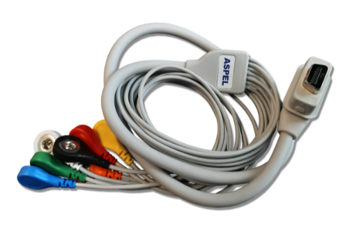 Kabel ASPEL KRH-703 v.422 - przeznaczony do współpracy z rejestratorami ASPEL, które umożliwiają wykonywanie diagnostycznych badań EKG u dorosłych i pediatrycznych pacjentów we wszystkich placówkach służby zdrowia przez przeszkolonych personel.