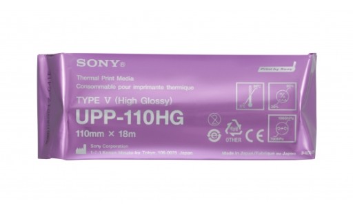 Wysokiej jakosci papier do wideoprinterów marki Sony, model UPP-110 HG 110x18. Opakowanie: