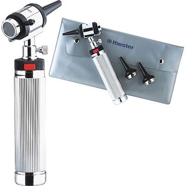 May-oftalmoskop niemieckiej marki Riester to rozsądny wybór dla studenta medycyny lub lekarza. Przeznaczone do wziernikowania ucha wyposażone w lupę powiększającą i oświetlenie różnego rodzaju. Dzięki budowie modułowej możliwa jest ich rozbudowa. Trwała i solidna głowica metalowa zapiewnia długa pracę urządzenia . Regulacja ostrości z przesłonami od -20 do + 20 dioptrii. Połączenie wtykowe umożliwia szybkie i bezpieczne mocowanie do rękojeści. Dostępne że światłem standardowym 2,7 V. Szczelina z dyżym kołem do badania dna oka. Prosta wymiana żarówki z przodu ramienia oświetlacza.