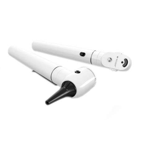 Zestaw Otoskop ze światłowodem i żarówką ksenonową + oftalmoskop z żarówką halogenową w kolorze białym.