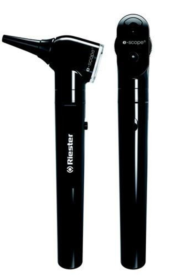 Oftalmoskop e-scope firmt RIESTER z żarówką standardową 2,7 V. Urządzenie posiada łatwe w użyciu koło do wyboru jednej z sześciu przesłon oraz tarcze do ustawiania dioptrii . Wyposażony w praktyczny klips, dzięki któremu można przyczepić go kieszeni i noszenie go jak długopis. Przyrząd posada zabezpieczenia antykurzowe. Produkt dostarczany jest w eleganckim etui dostępny w kolorze białym oraz czarnym.
