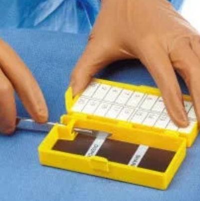 Licznik z wbudowanym zdejmowaczem ostrzy, z bloczkiem piankowym, z możliwością wyjmowania i przyklejania do stolika narzędziowego.
