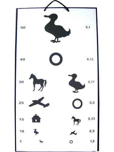 Tablicę należy umieścić w odległości 5 metrów od siedziska badanego pacjenta.