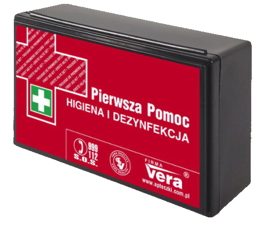 Apteczka Pierwsza Pomoc HIGIENA I DEZYNFEKCJA zawiera niezbędne środki do przeprowadzenia dezynfekcji. Wyposażenie apteczki zapewnia ochronę w postaci maseczek i rękawiczek.