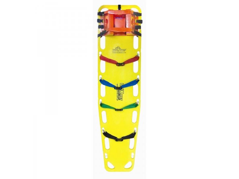 Deska ortopedyczna IRON DUCK ze stabilizacją klockową głowy i kompletem pasów.