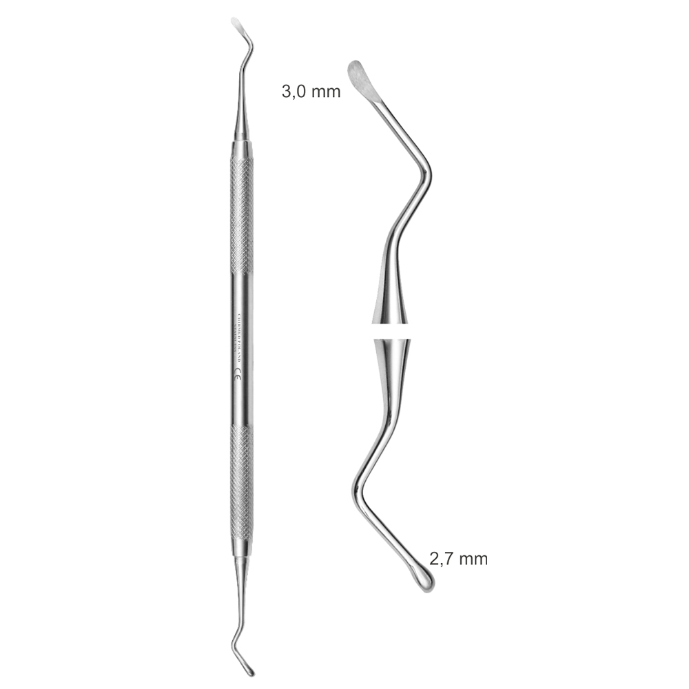 [Ekskawator typu LUKAS, do brodawek], podwójnie zakończony, 3,0 mm x 2,7 mm