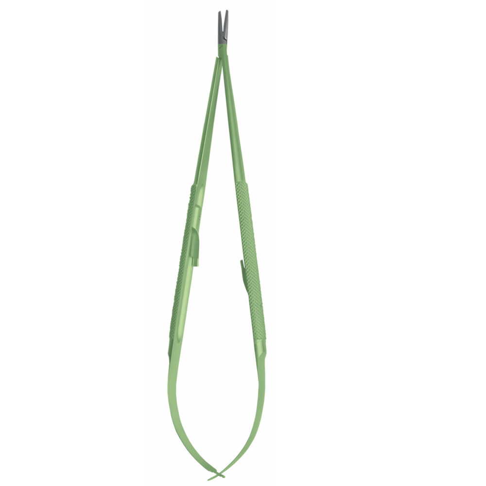 Igłotrzymacz mikrochirurgiczny z okrągłą rączką, z zamkiem, dł. 185 mm, kolor zielony, proste, z tytanu