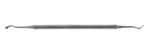 Narzędzie Frahm przeznaczone jest do modelowania wypełnień kompozytowych w trakcie zabiegów stomatologicznych. Zaopatrzony jest w dwie różnorodne końcówki, jedną w kształcie przypominającym grot strzały do pobierania materiału i drugą z ostrym zakończeniem do jego porcjowania i formowania. Dobrze sprawdza się przy małej i średniej wielkości wypełnieniach. Narzędzie wykonane jest z najwyższej jakości stali chirurgicznej. Rękojeść zapewnia pewny i wygodny chwyt. Idealnie leży w dłoni dzięki rowkowanej powierzchni na części chwytnej. Przeznaczony do wielokrotnego użytku, dezynfekcji i sterylizacji. Produkt najwyższej jakości polecany i ceniony przez wielu użytkowników.