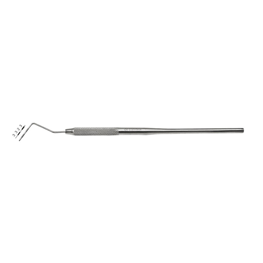 Sonda perio to narzędzie do wykrywania niewielkich ubytków, badania gładkości i spoistości tkanek twardych zęba. Sprawdza się również w trakcie analizy stopnia wrażliwości na bodźce mechaniczne. Sonda diagnostyczna znajduje zastosowanie przy badaniu gładkości i twardości wypełnień. Trzonek narzędzia służy zazwyczaj do badania stanu ozębnej poprzez opukiwanie zęba. Jest też bardzo pomocny przy palpacji pośredniej. Narzędzie pozwala na dokonanie pomiaru korzenia zęba w przebiegu diagnostyki i leczenia. Narzędzie wykonane ze stali chirurgicznej.