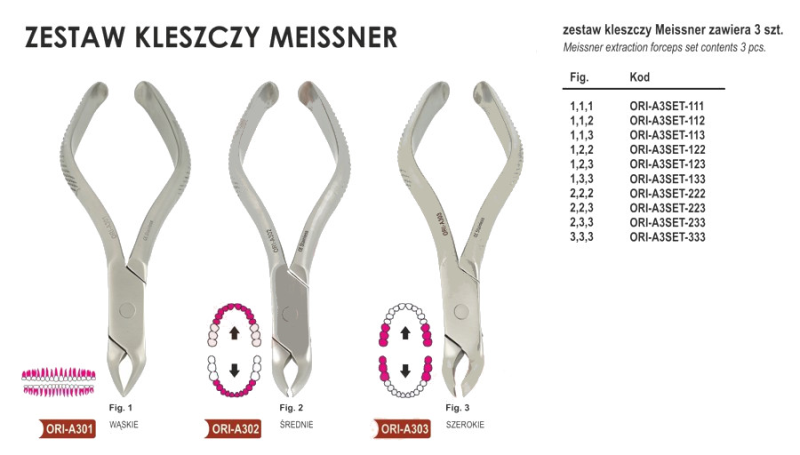 Kleszcze Meissner komplet 3 szt. (fig. 1, 3, 3)