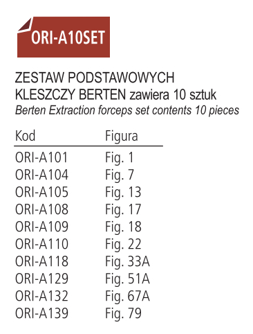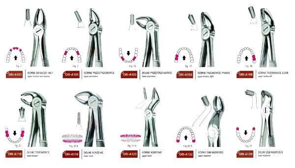 W ofercie sklepu 47 różnych figur kleszczy Berten do zębów stałych.