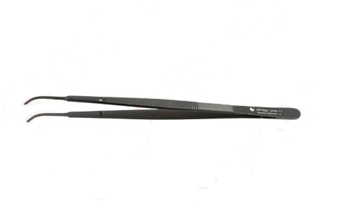 Pęseta chirurgiczna GERALD, czarna ceramika, wygięta, dł.17,5 cm, ząbki 1x2