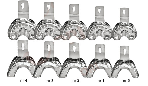 [Zestaw łyżek wyciskowych] bez rantu, perforowanych - 10 szt. (góra + dół w rozmiarach 0, 1, 2, 3, 4).