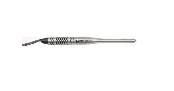 Uchwyt przeznaczony do wymiennych ostrzy chirurgicznych - skalpeli. Stosowany jest podczas zabiegów chirurgicznych i ambulatoryjnych. Składa się z ergonomicznej rączki o zaokrąglonym kształcie zakończonej cienkim wygiętym uchwytem na ostrze. Dzięki takiej budowie idealnie sprawdza się podczas zabiegów wymagających cięć wszelkiego rodzaju. Do produkcji przyrządu użyto najwyższej jakości stali chirurgicznej, jakość potwierdzona certyfikatami. Uchwyt na ostrza został dodatkowo pokryty czarną powłoką ceramiczną, która całkowicie eliminuje refleks świetlny w trakcie wykonywania zabiegu. Ponadto powłoka ta ochrania i zabezpiecza stal chirurgiczną. Produkt najwyższej jakości ceniony i polecany przez wielu użytkowników.