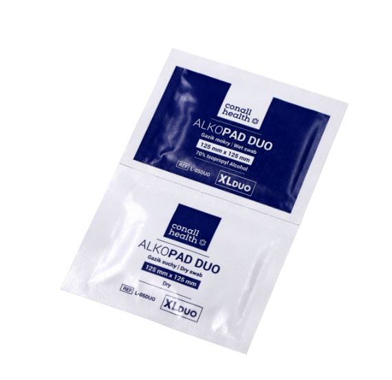 ▪ Każdy gazik ALKOPAD jest zapakowany osobno, w opakowanie folia aluminiowa – papier
