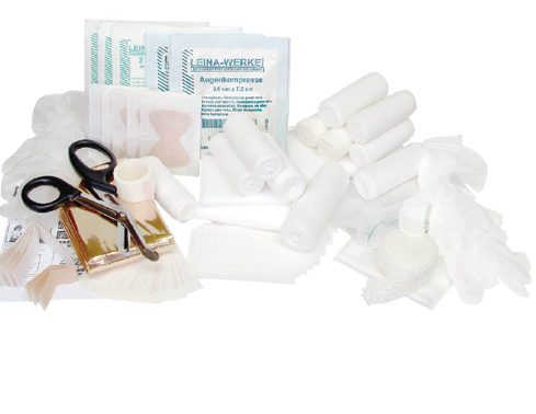 Wkład apteczny zawierający kompletne wyposażenie medyczne do udzielania pierwszej pomocy