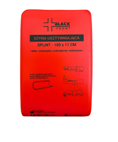 Szyna usztywniająca typu SPLINT o wymiarach 100 x 11 cm. Szyna pakowana na płasko. Podstawowe element każdego zestawu ratowniczego.