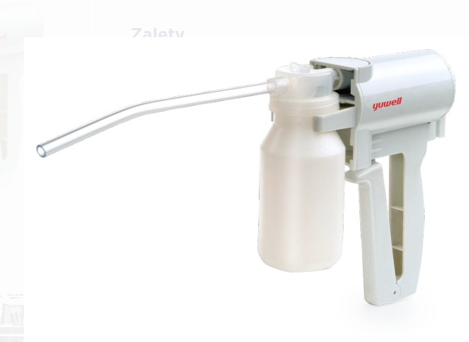 Ssak ręczny typu pistoletowego marku Yuwell, model 7B-1 to wyrób medyczny przeznaczony do szybkiego odsysania treści (płynów, wydzielin) z jamy ustnej i górnych dróg oddechowych w trakcie udzielania pomocy doraźnej.