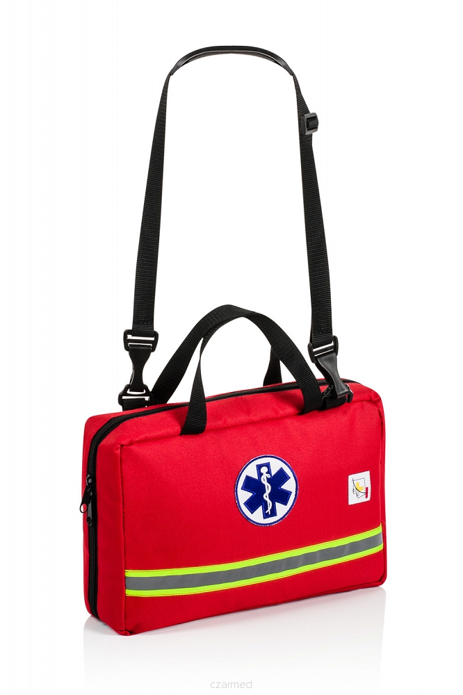 Funkcjonalna i nowoczesna torba pierwszej pomocy wraz z podstawowym wyposażeniem.