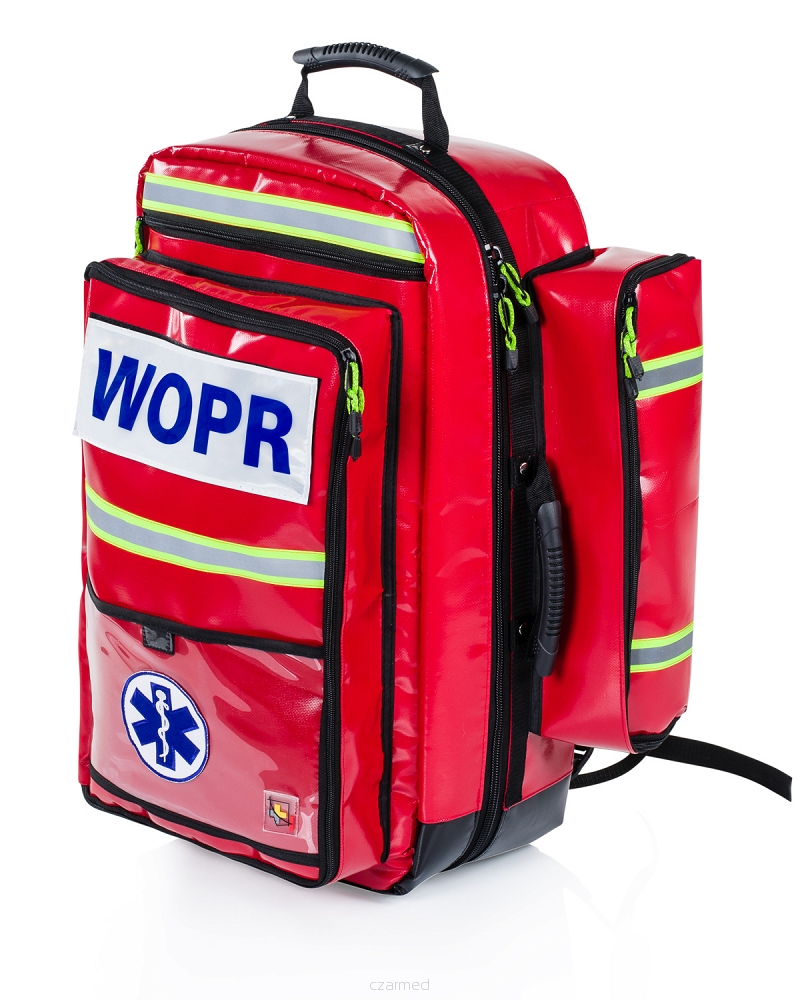Zestaw ratownictwa medycznego WOPR R1 został przygotowany zgodnie z rozporządzeniem Ministra Spraw Wewnętrznych (Dz. U. z dnia 27 lutego 2012 r., poz. 261). Umieszczony w nowym, funkcjonalnym plecaku zapewnia komfortowe warunki transportu, przechowywania oraz udzielania pierwszej pomocy. Wysoka jakość elementów oraz starannie wyselekcjonowane wyposażenie stanowią gwarancję wytrzymałości i funkcjonalności. Plecak, w którym umieszczono zestaw ratownictwa medycznego WOPR R1, został wykonany ze specjalnej powlekanej tkaniny PLAN, odpornej na uszkodzenia, przetarcia i czynniki atmosferyczne. Jego ergonomiczna forma sprawia, że plecak można wykorzystywać w bardzo praktyczny sposób, przechowując i transportując niezbędne środki medyczne.