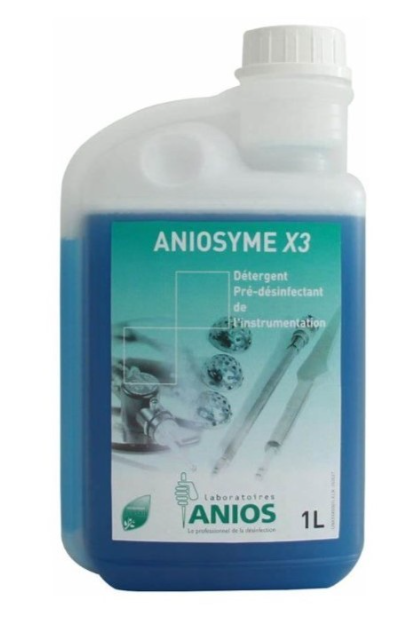 Anios, płyn Aniosyme X3 służy do manualnego mycia i wstępnej dezynfekcji narzędzi medycznych, chirurgicznych i termolabilnych oraz sprzętu endoskopowego przed sterylizacją. Może być stosowany w myjkach ultradźwiękowych.