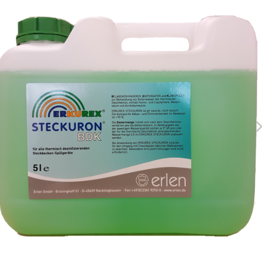 ERKUREX Steckuron BDK jest oryginalnym dobrze sprawdzonym porduktem firmy Erlen. Jest to środek do stosowania w myjniach dezynfektorach przeznaczonych do mycia i dezynfekcji naczyń sanitarnych.