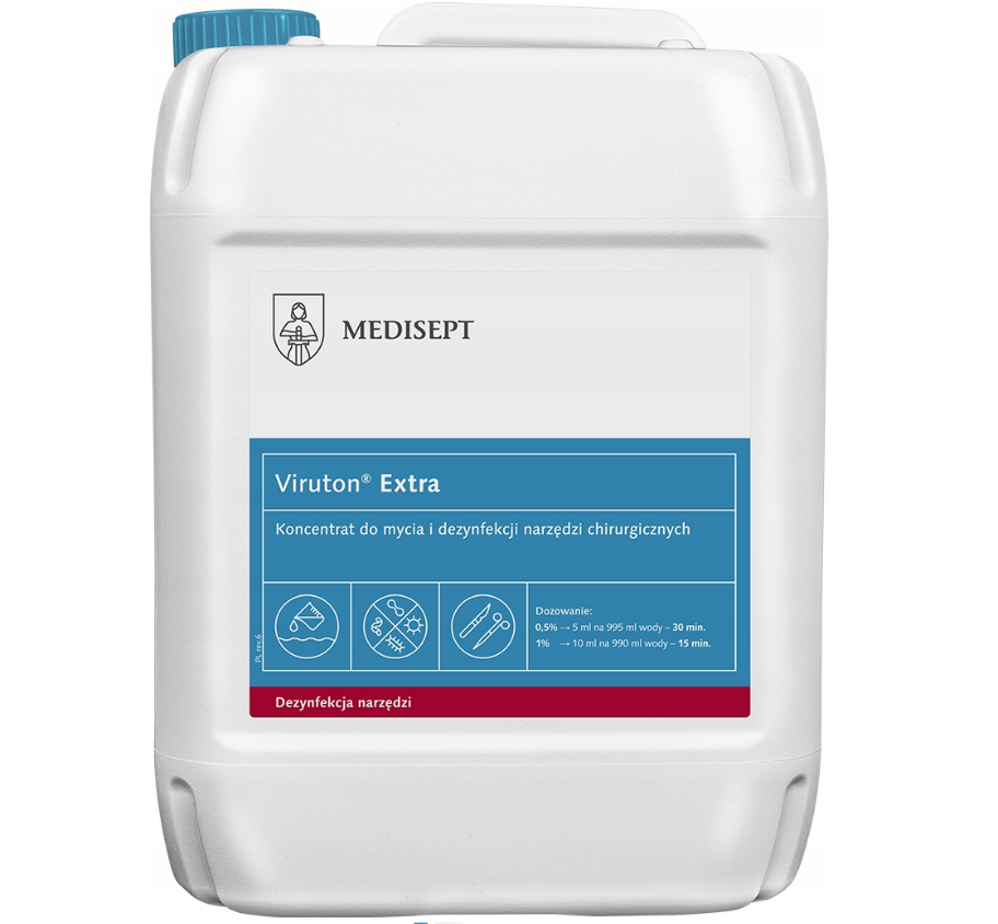 Viruton Extra to wydajny koncentrat przeznaczony do jednoczesnego mycia i dezynfekcji instrumentów chirurgicznych i rotacyjnych.
