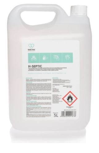 Preparat H-Septic to płyn do higienicznej i chirurgicznej dezynfekcji rąk i skóry oparty na alkoholu etylowym.