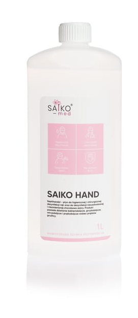Saiko Hand to preparat na bazie alkoholu, przeznaczony do skutecznej higienicznej i chirurgicznej dezynfekcji rąk oraz skóry. Skutecznie eliminuje bakterie, grzyby, wirusy i prątki, zapewniając wysoką ochronę przed zakażeniami. Formuła została opracowana z myślą o komforcie skóry – nie powoduje jej wysuszenia ani nie pozostawia uczucia lepkości. Produkt przebadany dermatologicznie.