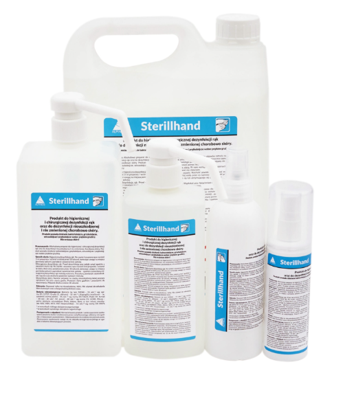 [Sterillhand 1L– preparat w postaci płynu produkowany na bazie alkoholu etylowego o działaniu bakterio, grzybo, wiruso, prątkobójcze i bójcze wobec prątków gruźlicy, przeznaczony do higienicznej i chirurgicznej [dezynfakcji rąk].
