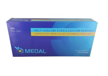 Samoprzylepne torebki foliowo - papierowe wykonane zostały z papieru medycznego o gramaturze 60g/m2 i wielowarstwowej folii PET/CPP. Torebki stosowane są do sterylizacji narzędzi medycznych parą wodną (STEAM). Szeroka gama rozmiarów zapewnia możliwość wyboru produktu do konkretnych wymagań i przeznaczenia, a samoprzylepna taśma klejąca ułatwia szybkie przygotowanie pakietu.